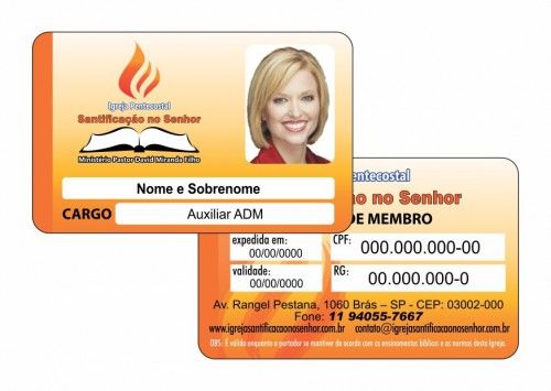 Também produzimos cartões, carteirinhas e credenciais em PVC para igrejas e instituições religiosas, atendendo membros, pastores, obreiros, diáconos, presbíteros e ministros do evangelho.