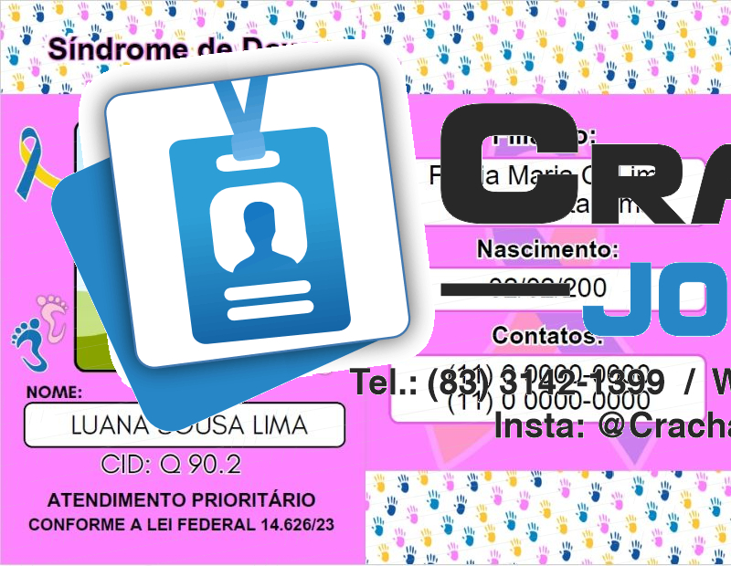 Kit Crachá Síndrome de Dow com Cordão e Capinha